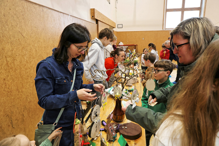 Ještě před samotným zahájením programu si návštěvníci mohli zakoupit krásné velikonoční výrobky vyrobené našimi žáky. V nabídce byly například zápichy, květiny, dekorace, malovaná vajíčka, sladké cukroví i tradiční velikonoční beránek.