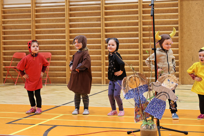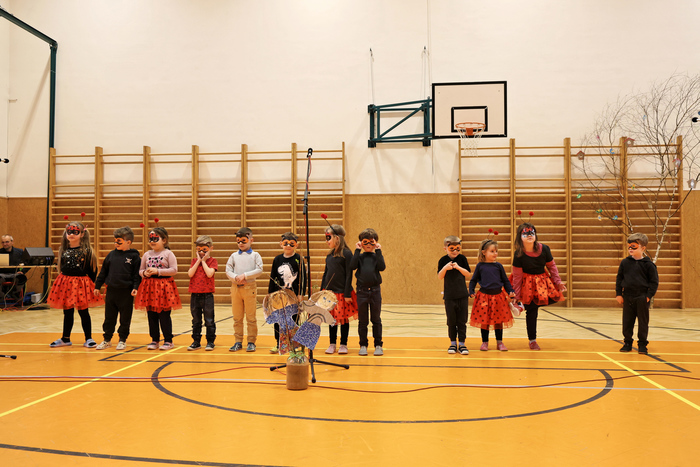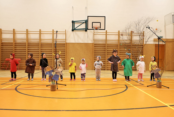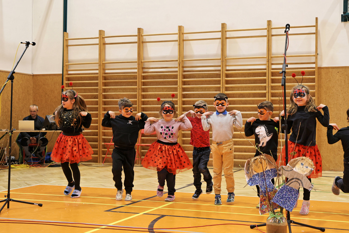 V úvodu vystoupily děti z mateřské školy, které potěšily všechny přítomné svým tanečním vystoupením. Na ně navázali žáci 1. stupně, kteří zazpívali několik veselých písní a navodili tak tu pravou jarní náladu.